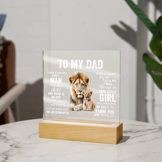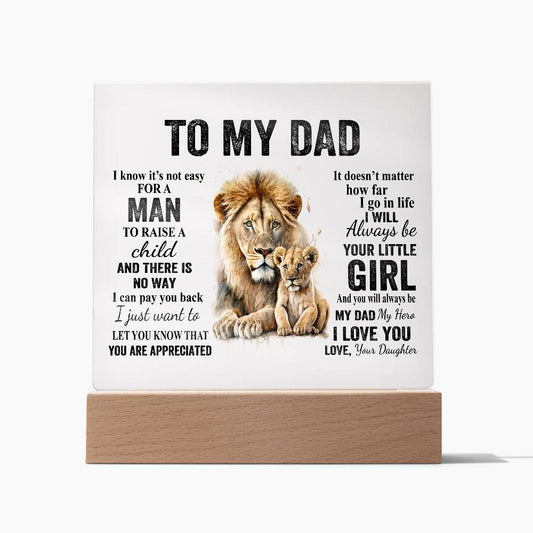 TO MY DAD LION ACRYLIC Square Plaque ( White Letters )