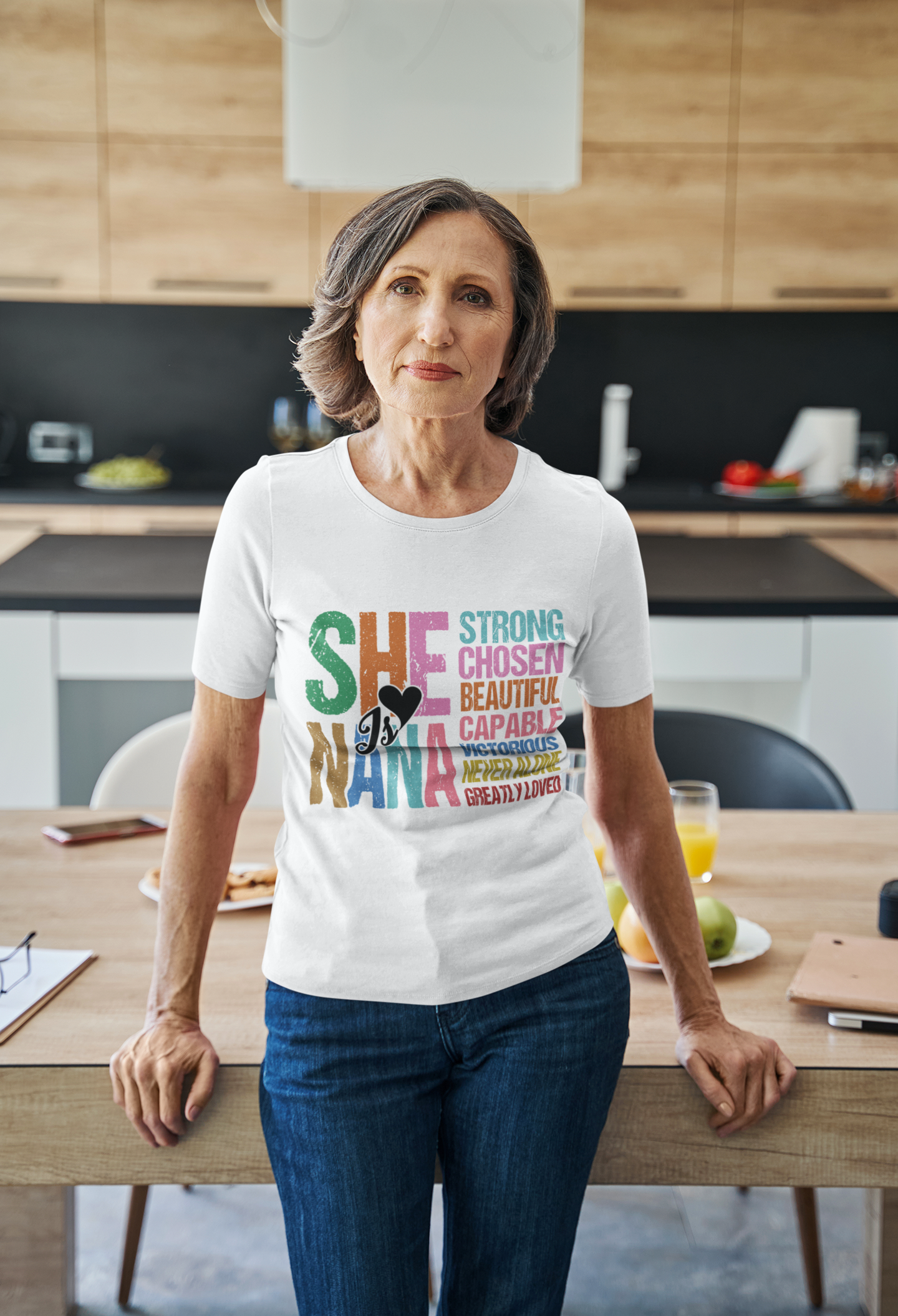 Elevate your style with "SHE IS NANA" today and honor the special bond with Nana!