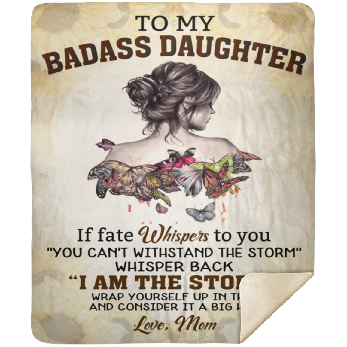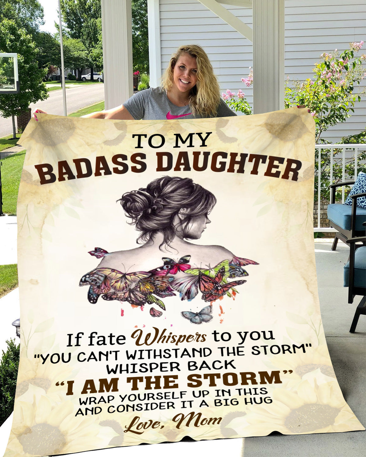 To My BADASS DAUGHTER, If fate Whispers to you "YOU CAN'T WITHSTAND THE STORM" WHISPER BACK "I AM THE STORM" WRAP YOURSELF UP IN THIS AND CONSIDER IT A BIG HUG. Love Mom